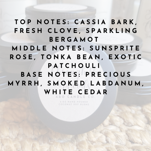 Top Notes: Cassia Bark, Fresh Clove, Sparkling Bergamot Middle Notes: Sunsprite Rose, Tonka Bean, Exotic Patchouli Base Notes: Precious Myrrh, Smoked Labdanum, White Cedar